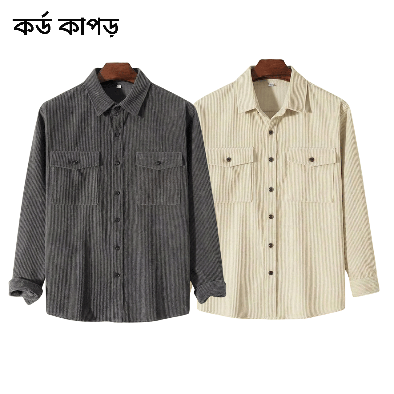 2 Pcs Cord Full Sleeve Shirt – Ash+ Cream