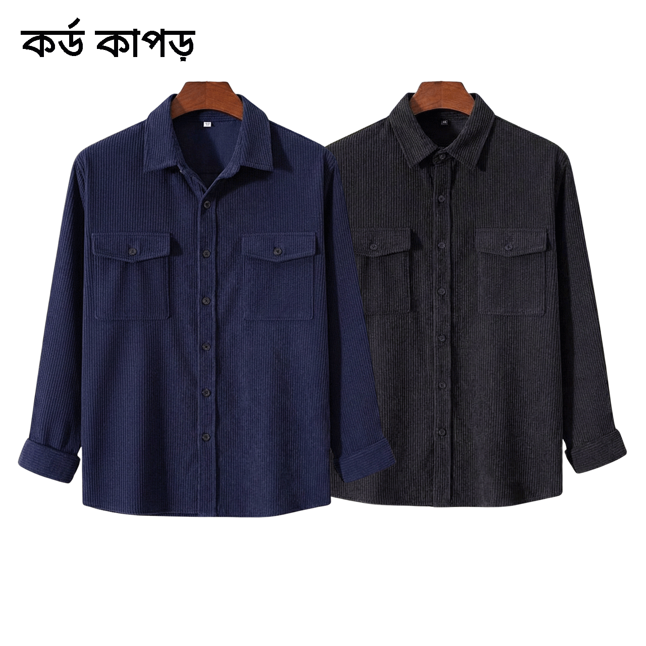 2 Pcs Cord Full Sleeve Shirt – Black+ Navy