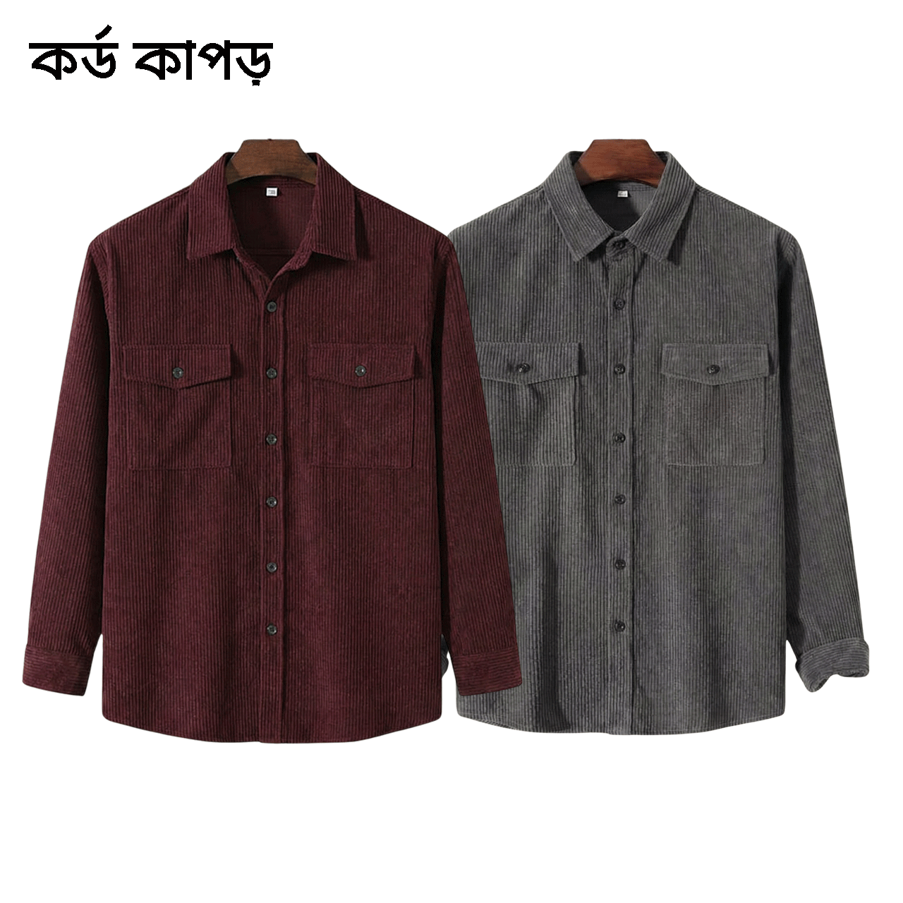 2 Pcs Cord Full Sleeve Shirt – Coffee+ Ash