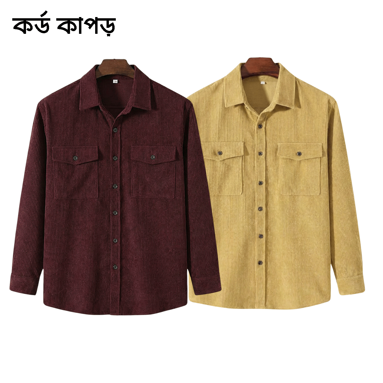 2 Pcs Cord Full Sleeve Shirt – Coffee+Golden