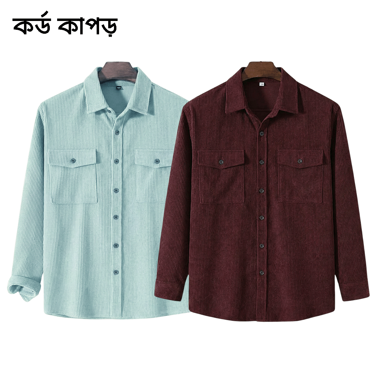 2 Pcs Cord Full Sleeve Shirt – Mint+Coffee