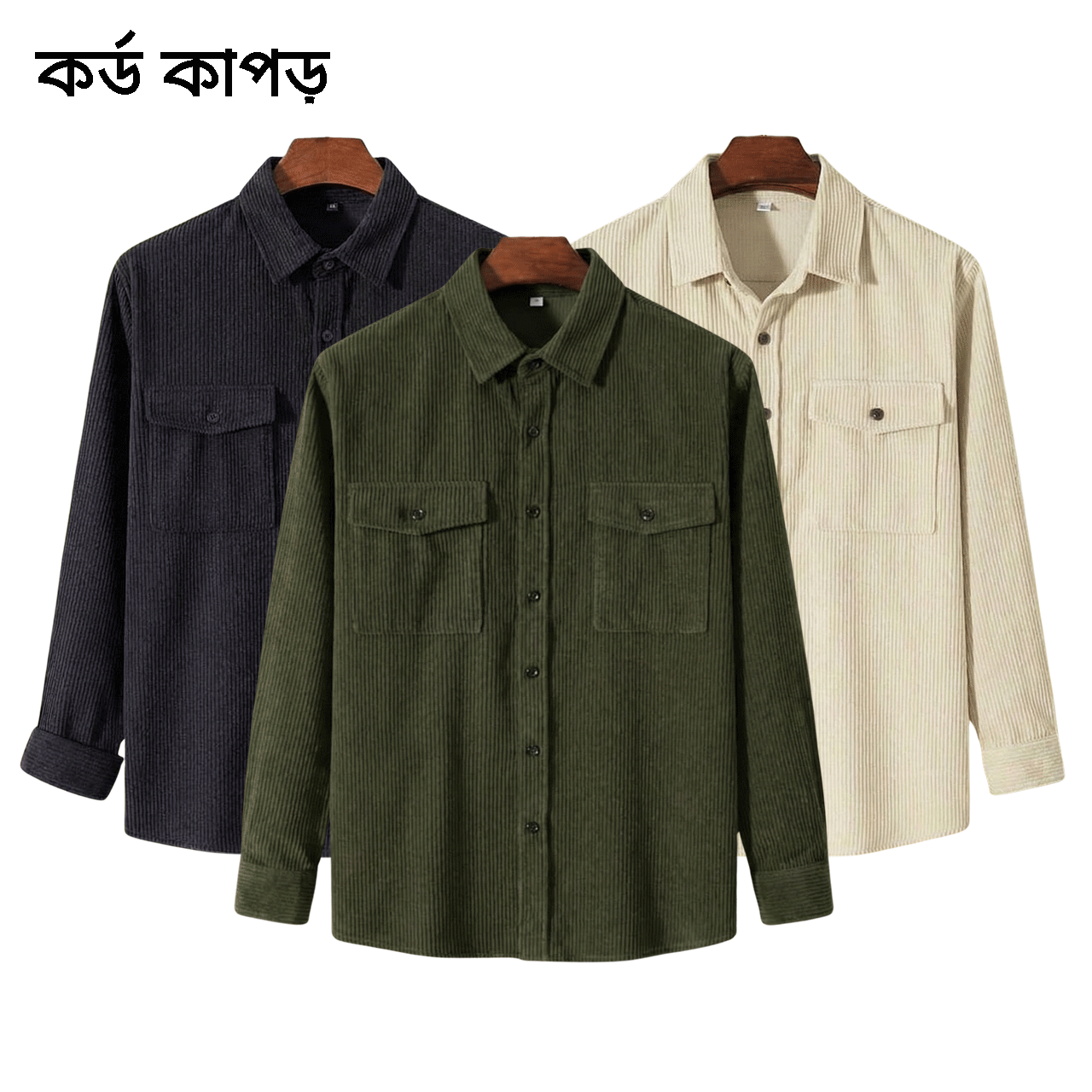 3 Pcs Cord Full Sleeve Shirt – Black+Jolpai+Cream