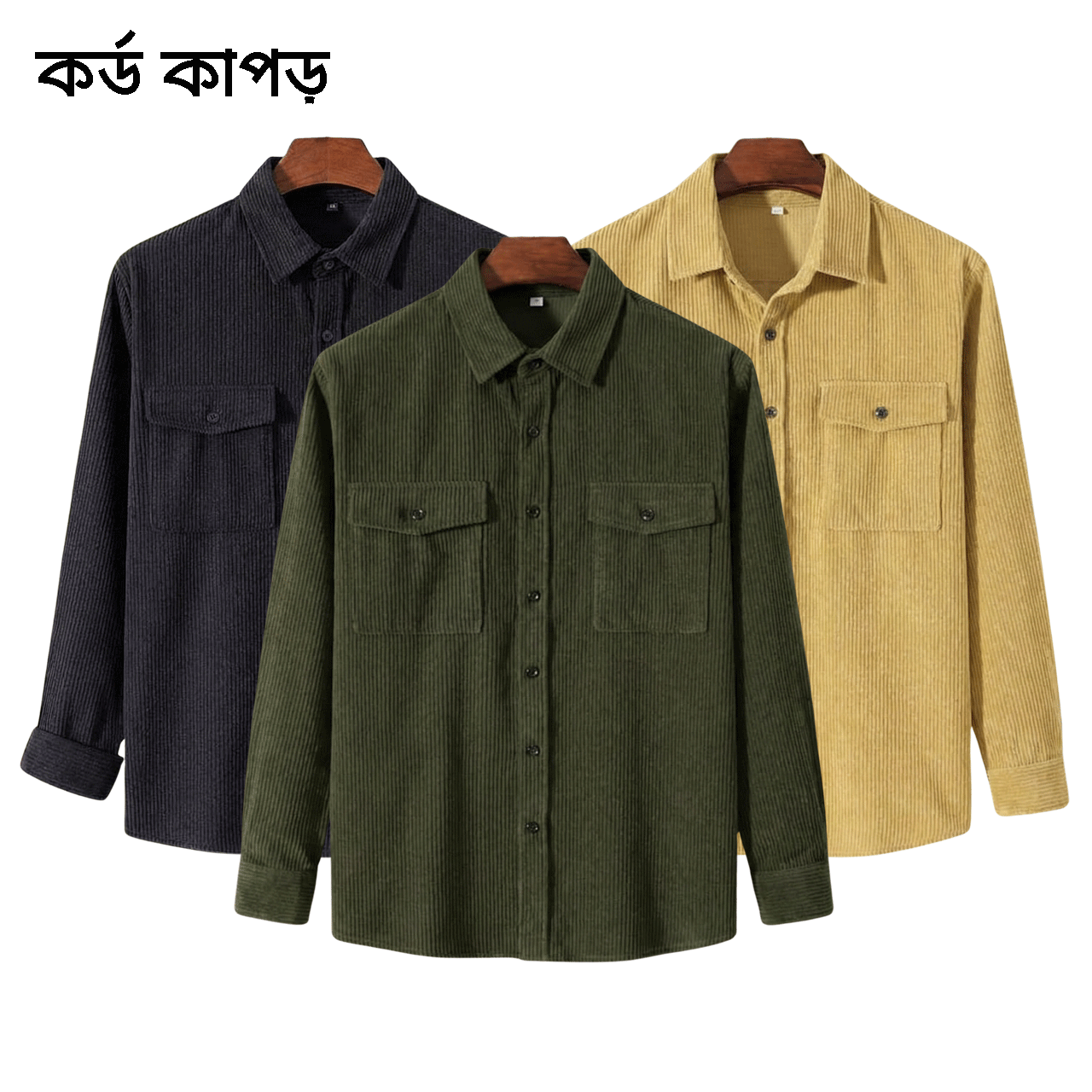 3 Pcs Cord Full Sleeve Shirt – Black+Jolpai+Golden