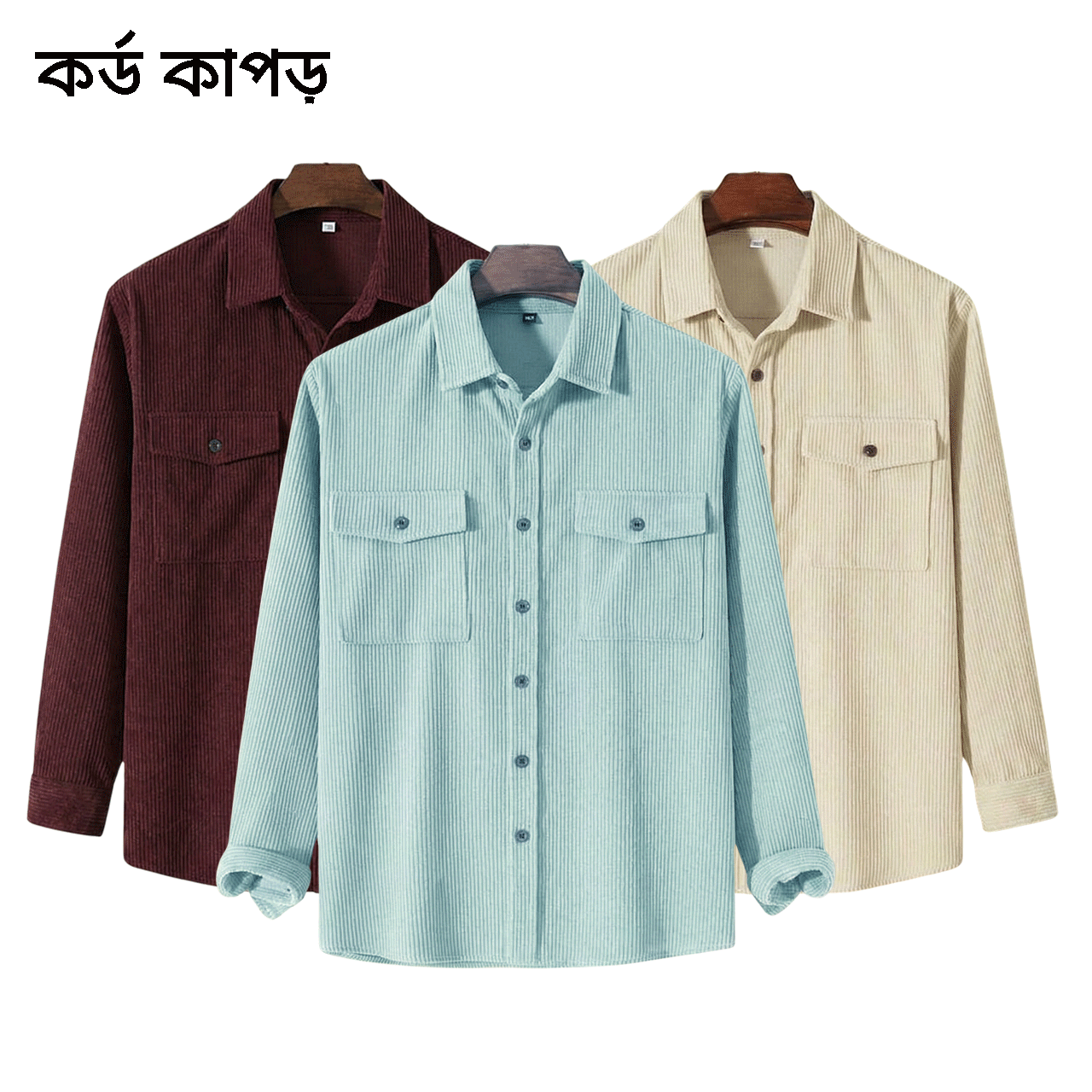 3 Pcs Cord Full Sleeve Shirt – Meroon+Mint+Cream