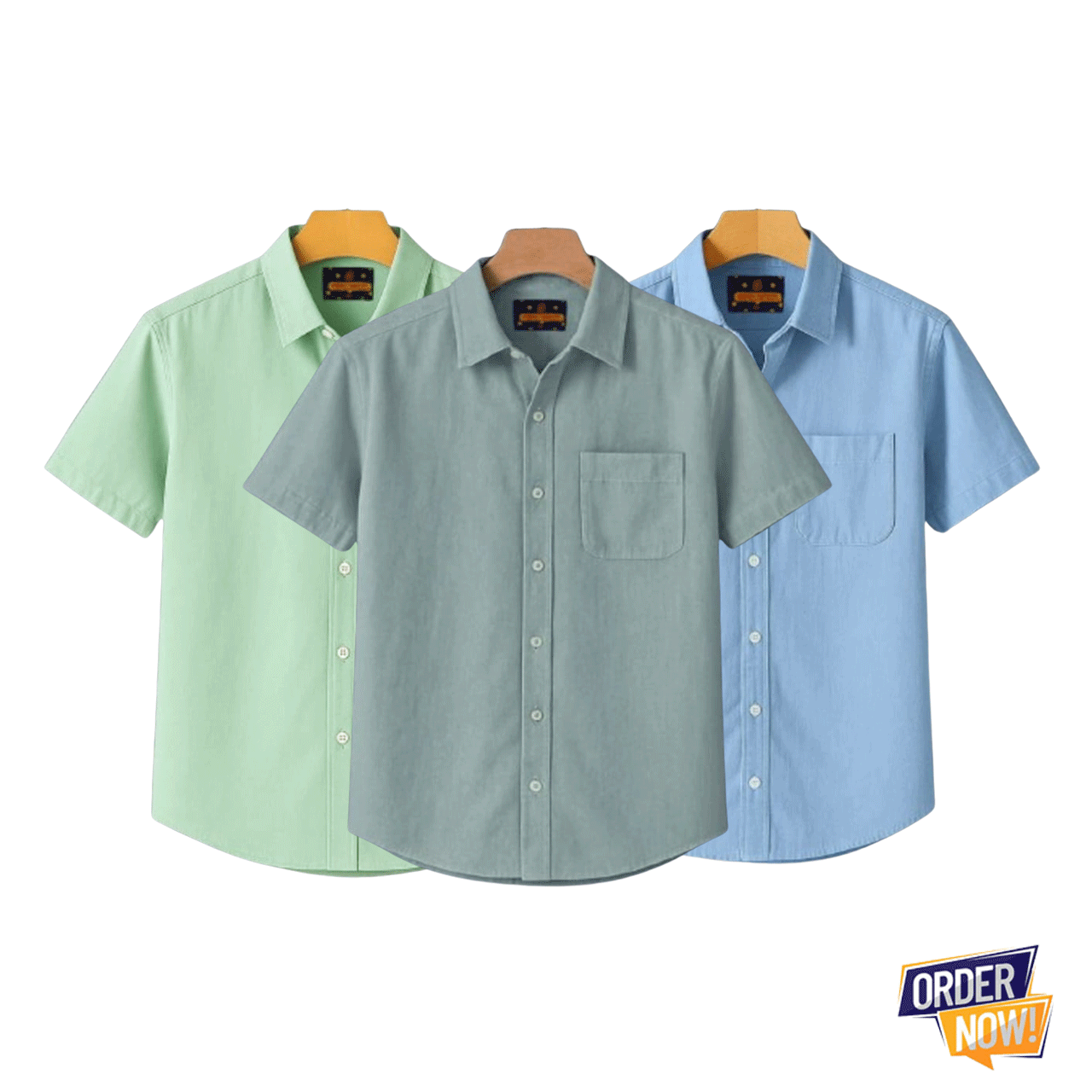 3 Pcs Kaizar Half Sleeve Shirt- Lemon+Sky+Gray